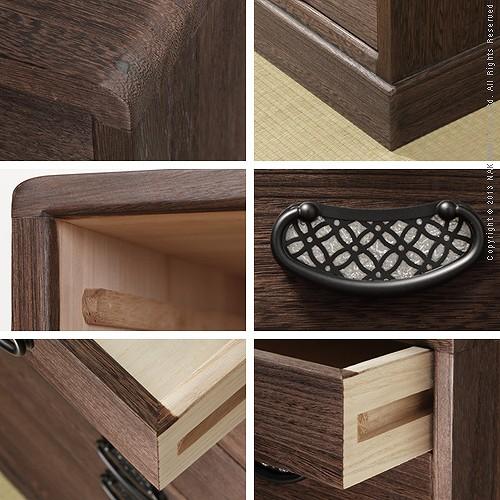 引出しはしっかりしたつくりの「留め加工」を用い、金釘を使用しておりません。
